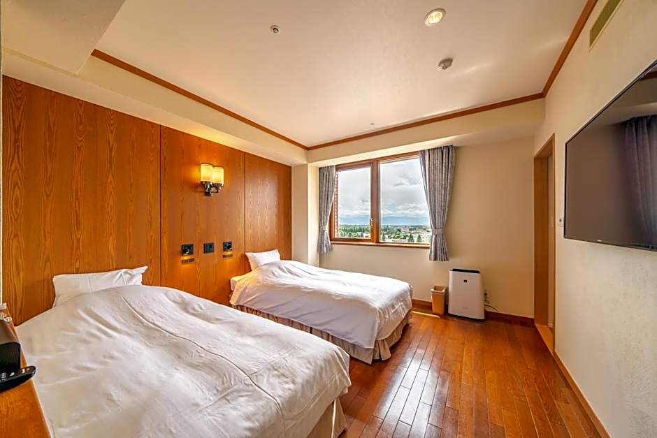 This air-conditioned twin room has a terrace, desk, wardrobe, sofa and heating. Amenities include an electric kettle, refrigerator, free toiletries and LCD TV. The room features wooden flooring and floor-to-ceiling windows.
